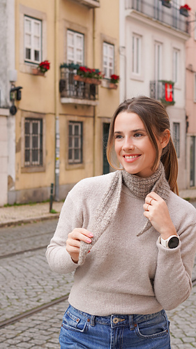 Der JJ Miniscarf No 1 kann sowohl aus einer günstigeren Variante mit nur einem Knäuel Brigitte No. 2 gestrickt werden als auch in einer luxuriösen Variante aus Cashmere Light. Beide Versionen sind wunderschön und verleihen dem Schal jeweils ihren ganz eigenen Charakter.