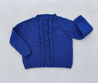 Sweater is knit top-down with raglan shaping, divided at the underarms and the torso continued to hem. Sleeves are picked up and knit in the round to the cuffs.