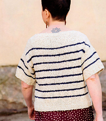 Ohuet raidat keventävät vaikutelmaa, kun neulot puseron näyttävästä langasta paksuilla puikoille, vinkkaa suunnittelija Anna Tanskanen.