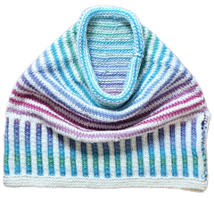 KaleidoKnit Cowl plays with color and direction, combining bold vertical and horizontal stripes for a vibrant look. Using mosaic knitting, self-striping yarn takes center stage while simple slip-stitches keep the project approachable and quick to knit. The cowl begins at the lower edge, worked flat with vertical stripes, then is joined to work in the round. From there, horizontal striping and gradual decreases shape the cowl into a tapered funnel neck - perfect for layering under coats or over sweaters.