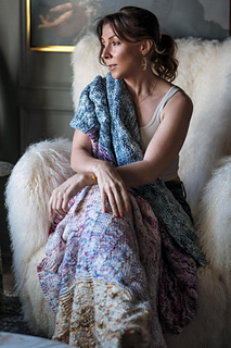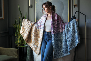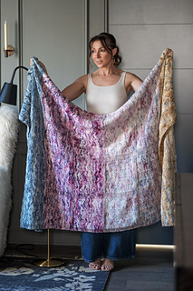 Kathleen is the ultimate knitted blanket. Worked in Expression Fiber Arts Buttery Bulky, it knits up quickly, making it the perfect weekend project. The garter stitch border outlines the piece, as well as acting as a divider for squares of Herringbone pattern. I named the piece Kathleen after Kathleen Kelly in the classic rom-com, You’ve Got Mail. Kathleen’s house is the perfect blend of cozy and classic; this blanket, thrown over the back of a winged armchair, would feel right at home.