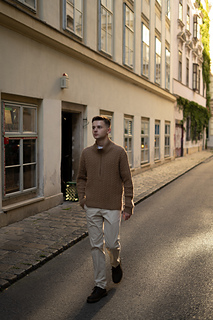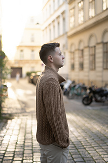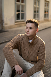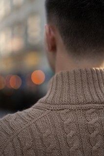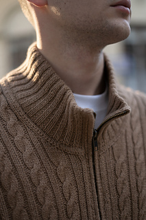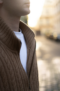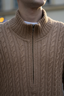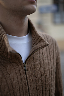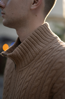 “Keep It Braids” Polo is worked seamlessly from the neck down. First, the Back Yoke is worked, then stitches for the Fronts are picked up along the shoulder, and the two halves of the Front with are first worked separately, then joined to each other after shaping of the round neckline, armholes and the front placket have been completed. Back and Front are joined after armhole shaping has been completed, then the Body of the sweater is worked in one piece in the round to the desired overall length. Finally, the sleeves are worked from the armhole down, a subtle sleeve cap is added through short row shaping. Work concludes by sewing the zipper to the front plackets, knitting the collar and finishing the front plackets.