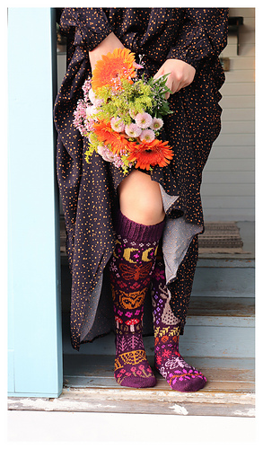 Pattern for Kesäyön Onni (Summer Night Happiness) Socks was published on November 2023 in the Finnish knitting book called Villasukkabuffet - Toinen kattaus. The design is only available from the book at the moment.
