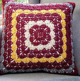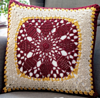 Pillow in light beige, mustard gold, wine red, gray. 2 designs.