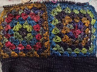 Use the same yarn type as the body of your Geddy in different colors for each tier. I used Malabrigo Rios for my Geddy Tee and my crocheted squares, which is a bit heavier than the yarn used in the original pattern.