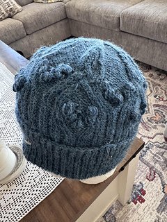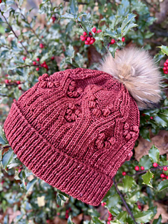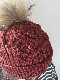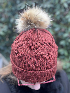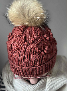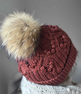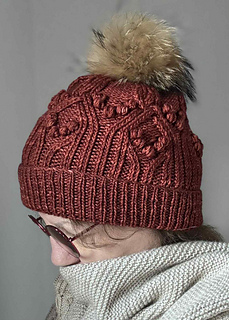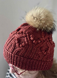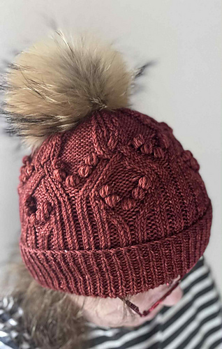 A richly textured hat featuring bobbles, cables, twisted stitches, and an intelligent ribbing that stays beautifully in place. It’s not the easiest project — you’ll need a bit of knitting experience — but it’s absolutely worth the effort. The result is a stunning, dimensional fabric full of character and charm.