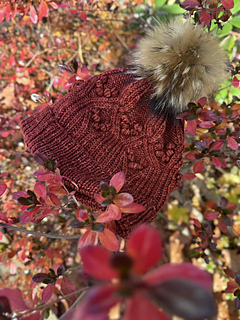 The maroon sample made of Madelinetosh Tosh DK, 100% SW merino, Ember colorway