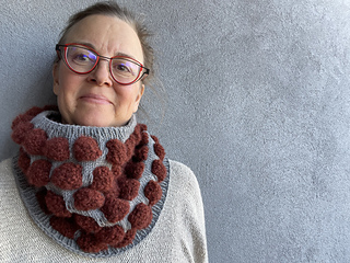 This joyful cowl design is all about having some fun while knitting and wearing texture! Using easy slip-stitch technique while combining two different yarns in texture and weight produces a striking entertaining effect! Like tiny snowballs or puffy dots, child or adult, everyone will find it a delight! Supplied with 2 options for edges – a cute drawstring casing and matching hem, and adorning the i-Cord tips with poms to match, or the minimal ribbed edges for a clean polished look.