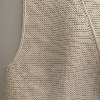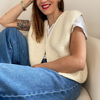 Lars is a sleeveless vest knitted entirely in garter stitch with i-cord finishing. With it’s “shepherd’s vest” look, it will add warmth to any outfit, whether worn over a folk inspired dress, a blouse or a total denim look. It is shown here in a plain ecru version, but the edges can be knitted in a contrasting color.