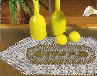 Hexagonal filet runner with open space in center.
