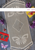 Filet runner with lacets and butterfly design, curly fringe in vanilla.