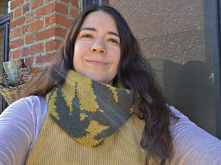 Construction notes: You knit the cowl in the round as a tube, starting with a provisional cast-on. Follow the colorwork chart until all rows are complete. Then, undo the provisional cast-on and graft the live stitches to the cast-on stitches. You can optionally add a mobius twist before grafting.