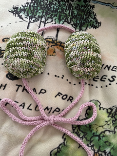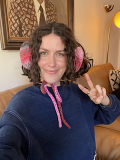 These oversized, stuffed earmuffs are knit in the round using Magic Loop with the option of written or charted instructions. We begin with Judy’s Magic Cast-On and work the earmuffs from the bottom up, stuff them and then finish by grafting the stitches together and threading the muffs onto an i-cord tie. The inner portion of the earmuffs use increases and decreases to shape an indentation for the ear and the height of each muff can be adjusted by sliding it up or down on the i-cord. Let’s be extra cozy and cute while we sit on our tuffets wearing our muffets, eating our curds and whey!