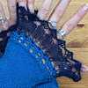 At the transition between yarn weights and colours and at the bind-off edge, some lace crochet is added to the mix.