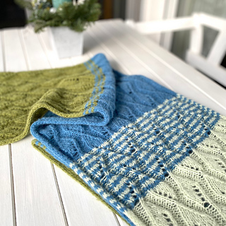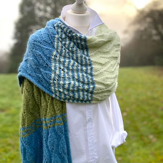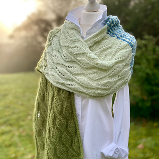 Die Größe des abgebildeten Schals beträgt nach dem Blocken