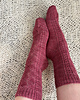 Worked from the cuff down, these mid-calf socks feature a lace and cable panel on the front and the back. When the desired length to heel is reached, you work a traditional heel flap in Eye of Partridge stitch which shows off this lovely yarn. After the heel turn the gusset is decreased to the same width as for the leg and then worked straight to the toe, which is grafted closed.