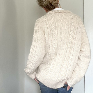 This Cardigan is oversized, super soft and is knitted from bottom up, while holding two yarns together throughout the whole cardigan. It has a bust circumference that will give you approx. 16 cm of positive ease and has 5 panels that will be sewn together with the blanket stitch. Once the parts are sewn together you will pick up stitches for the collar. There are 5 button holes and buttons. Each pattern size has its own customized pattern parts (on graph paper) to fit its two front, back and sleeve panels.