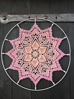 Sugeruję, aby obręcz kupić już na końcu. Wielkość mandali zależy od użytych nici, szydełka oraz jak mocno naciąga się nitkę podczas przerabiania.