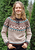 20 stitches and 24 rows/rounds = 10 cm/4” square in stranded colorwork, with larger needle size, knitted in the round, after blocking.