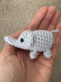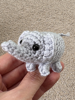 This project involves no sewing – the ears and legs are added while you make the head and body, so the only sewing is to close the hole at the end! If you choose to make the elephant without the box, this design also works well in thicker chenille yarns (resulting in a larger elephant).