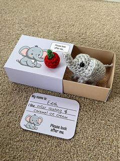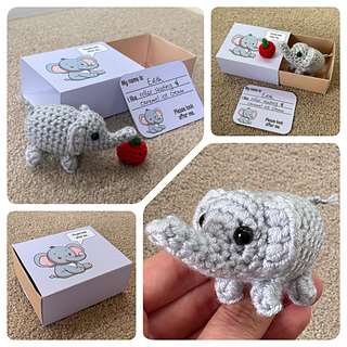 This pattern is for a small no-sew elephant and an apple for it to eat! The pattern also includes printable templates to enable you to make the matchbox and name card, making it an ideal gift, stocking filler or craft fair item.