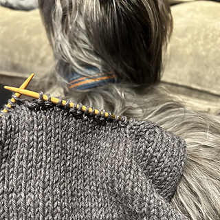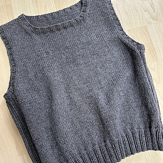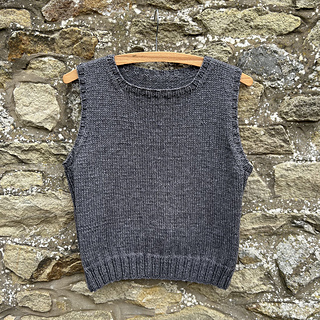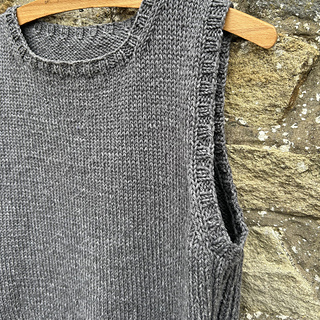 The back and front are knitted flat from the bottom upseparaterate pieces and joined together. The neck and armhole edges are picked up and knitted.
