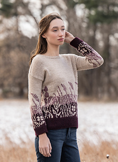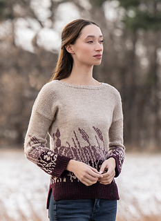 Inspired by the meadowscape and knit in Woolstok Worsted, this three-color sweater is knit from the bottom up. With so many color options, which one will be your favorite?