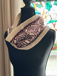 “This cosy cowl is worked seamlessly in the round, beginning and ending with a neat K1, P1 rib through the back of the loops for a crisp, structured edge,” explains Sandra Nesbitt. “The main body showcases a striking two-colour stranded design of flower medallions – perfect for adding a touch of elegance and colour to your winter wardrobe. With its rhythmic colourwork, the cowl is both a satisfying knit and a beautiful statement piece.”
