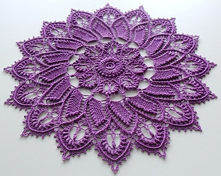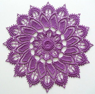 Your tension will determine things like hook size, yardage, finished size, and height of stitches. Using recommended thread and hook this pattern will use approximately 328 - 364 yards of thread. And your finished doily will be about 33 cm /13’’ in diameter from point to point.
