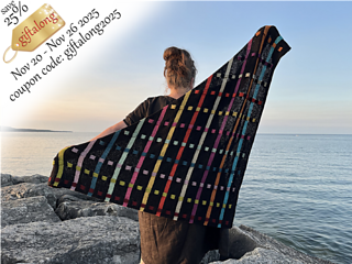 The „METRO SQUARES SHAWL“ is a huge triangle shawl playing with horizontal and vertical bold colour stripes at the same time. It follows the same idea like my WOVEN BANDS WRAP => creating a shawl with horizontal and vertical stripes the easy way - without working intarsia or stranded colourwork. Twelve bright colours cross each other on a dark background. You are invited to play around with this idea – maybe several shades of the same colour or a rainbow on a solid background ? Make it yours !