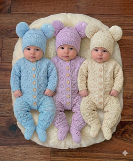 A beautiful 3 piece Romper set knitted with a simple eyelet stitch .