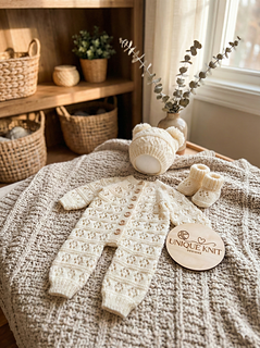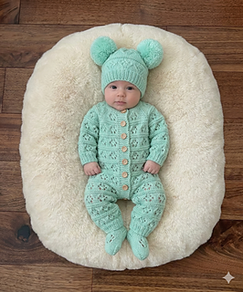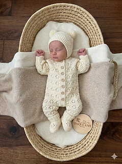 The matching bobble hat and Booties perfectly match this beautiful romper.