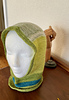It measures 13.5”/34cm tall from crown to neckline, 9”/23cm across the widest part, and 7.5”/19cm deep beyond the face opening. The cowl/neck length as shown is 6.25”/16cm.