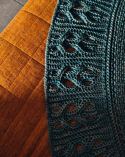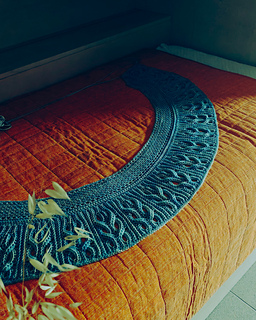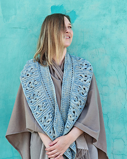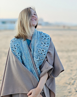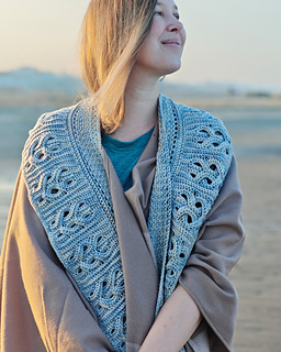 Its simple cable pattern and short rows forms a beautiful textured border that grows as you work. The wrap’s size is easily adjustable: you can make a small capelet to cover your shoulders or a long scarf-like version.