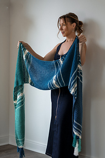 Adventurous Beginner: 120” L x 16.5” W (305 cm x 42 cm), blocked, without tassels