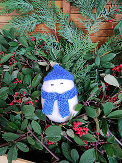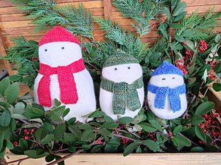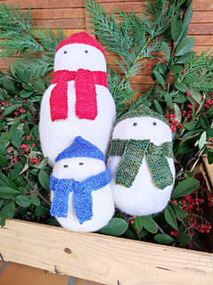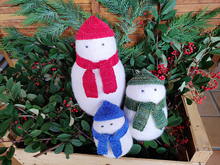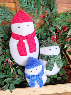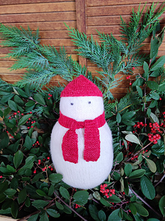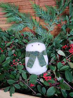 The snowman is worked in felting aran yarn (I used DROPS Nepal with 6 mm / US# 10 needles.