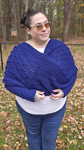 • Approximately 2120(2540, 3050) metres or 2320(2790, 3335) yards of fingering weight yarn, sample done in Bad Sheep Yarn Sparkle Fingering in the colourway Garland, click here to shop. You will need 6(7, 8) skeins of the Sparkle Fingering base.