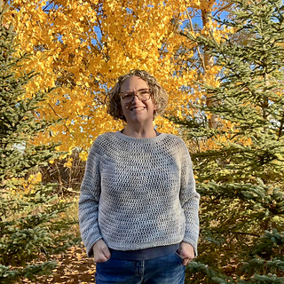 Sweater worked in one pieces from the top down: Yoke (Rounds), Torso (Rounds) Sleeves (Rounds), Yoke Border (Rounds).