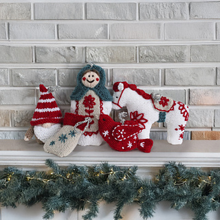 Finished size: Doll, 13cm, Horse 11 x 13cm, Gnome & Bird, 10cm, Boot 7cm