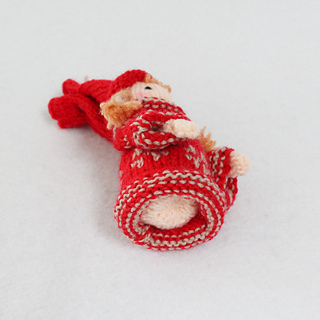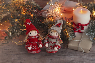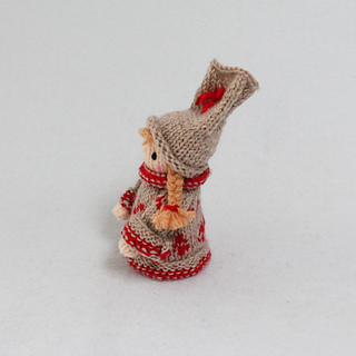 All components are knitted flat and stitched together at the finish. This project is quite simple to create, as the outfits are made from squares. They are attached to the body and cannot be removed.