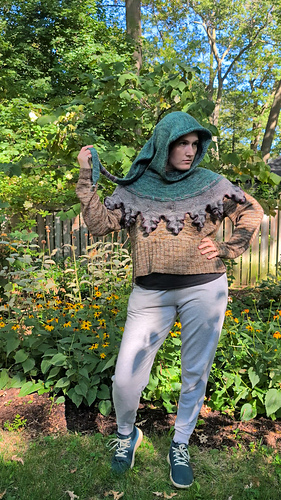 Nottingham is a fancy pants hooded cowl (or ultra-mini cloak) inspired by the snazzy folks of the Middle Ages. (Basically, a more elaborate cousin of Sherwood, with more everything.)