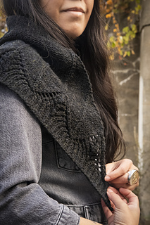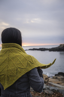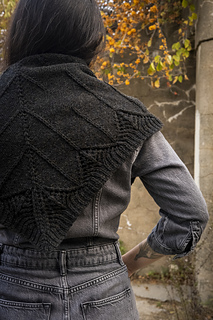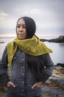 First published in September 2019, the revised Odetta Shawl pattern is written for two yarn weight options, Aran or DK.