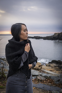 Shawls pictured are worked in Peace Fleece Worsted in color Baku Black, Peace Fleece DK in Lily Pad, and Harrisville Designs Nightshades in 12:57.