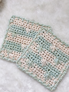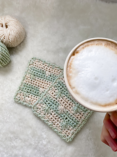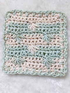 The coaster is worked flat in rows followed by a border worked in rounds.