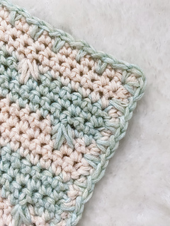 The border consists of 1 round of sc in A and a round of sc in B worked 2 rows below alternated with a slip stitch.