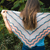 Le châle Ondine est un châle triangulaire de niveau débutant, travaillé du haut vers le bas, principalement en point mousse. De délicats motifs en point plume et éventail viennent interrompre le point mousse, créant de jolies ondulations qui ajoutent une touche de charme à ce châle simple. Tricoté en laine de poids “fingering” ou dans n’importe quelle grosseur de laine, ce châle à trois couleurs s’adapte facilement en taille et en métrage. C’est un projet relaxant et satisfaisant pour les tricoteurs de tous les niveaux, et une excellente introduction à la dentelle de base et au tricot de châles.