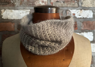Small Grey Cowl: Baby Alpaca Floof by Zakami Yarns, 25g/ 200m/ 218yds, 42% Baby Alpaca, 35% Silk, 13% Merino, 10% Yak, undyed.