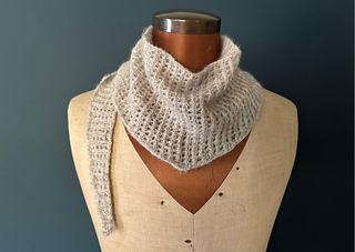 Small Grey Necktie: Baby Alpaca Floof by Zakami Yarns, 25g/ 200m/ 218yds, 42% Baby Alpaca, 35% Silk, 13% Merino, 10% Yak, undyed.