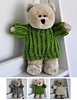 This adorable little bear is from Starbucks and available many places worldwide. They come in various outfits and many people collect them. Now you can crochet some cute little “hand knits” for bear. Pattern includes 3 styles shown: Cabled Pullover, Ribbed Pullover & Waffle Pullover.