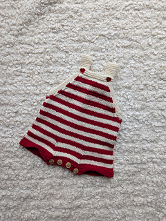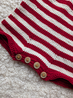 This playsuit is knitted in the round and in stockinette stitch, from the bottom up.